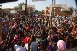 Dix heures, quand Sara Séré Sérémé sort de sa voiture et fend la foule pour se retrouver à l’estrade dans le but de livrer un message, la bonne dame est prise en tenaille par la foule qui scande « Prési ! Prési ! » Ils la tiennent par les mains comme un joueur qui venait de remporter un trophée avec qui l’on souhaite faire un tour d’honneur.