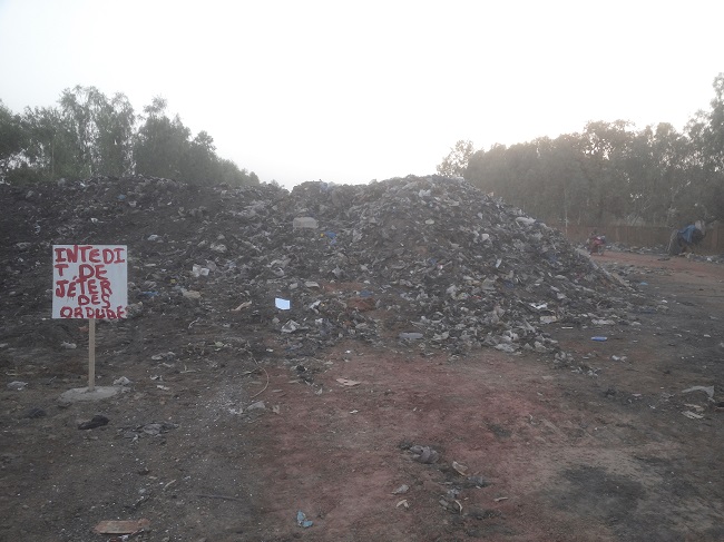 En moins d’une année, les ordures ont envahi cet espace au point d’obstrué la route. Le ménage semble être en cours. Le lundi 1er janvier 2016, l’endroit était revêtu de nouveaux habits. Des cartepillars dont les pneus sont toujours visibles ont retourné les ordures qu’ils ont placé en placés en plusieurs tas. Des pancartes indiquent : «Interdit de jeter les ordures ».